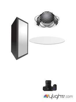 Another regular setup, one source on the side, slightly on the front of the model, and a white reflector to lighten a bit under the chin !