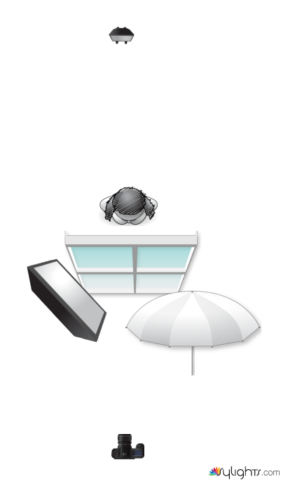 Lighting Diagram for Lola rain drops in the window using Perfect Pair Lighting Kit by FJ Westcott.