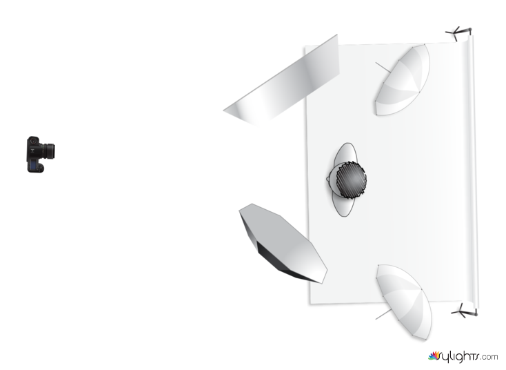 Luz secundaria: dos alien bee son sombrillas blancas