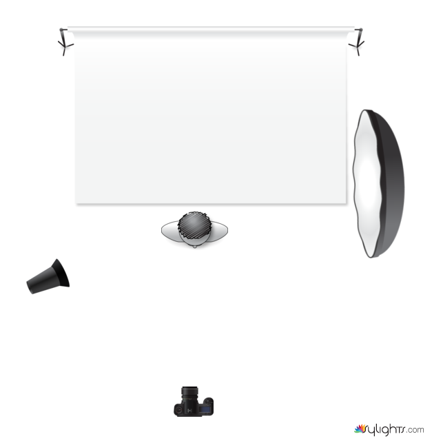 - wide beauty dish= 4ft, f7