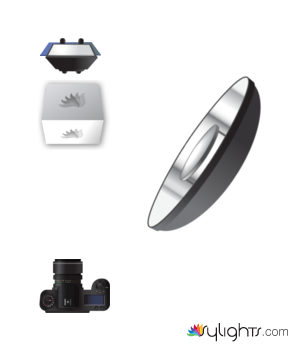 Beauty dish is about 2 feet from the subject, 4 feet off the ground, and is pointing downward