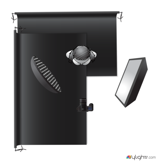 beauty dish 3ft from subject, Soft Box 5 ft from subject