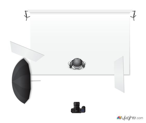 subject is 2 meters away form the white background, softbox is camera left
