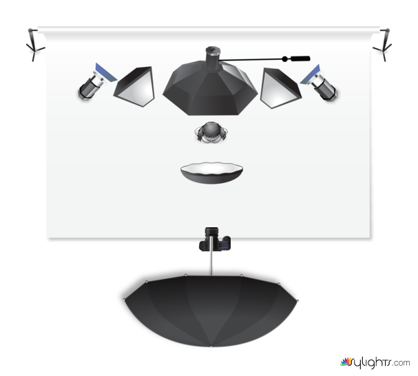 - 1 Overhead umbrella on a boom (hair light)