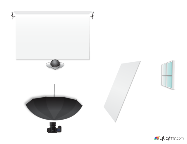 with the umbrella too reflect the light the reflector on the right will shine on the left of the model too lighten up their face and leave some shadowing on the other side