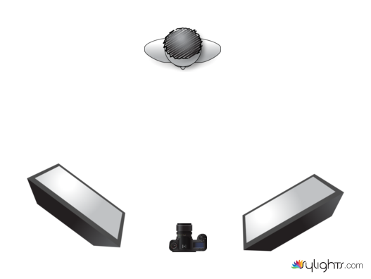 Used Softbox on either side of camera with two lights turned of on each to create a shadow effect on the backdrop (cream wall) from the subject (me)