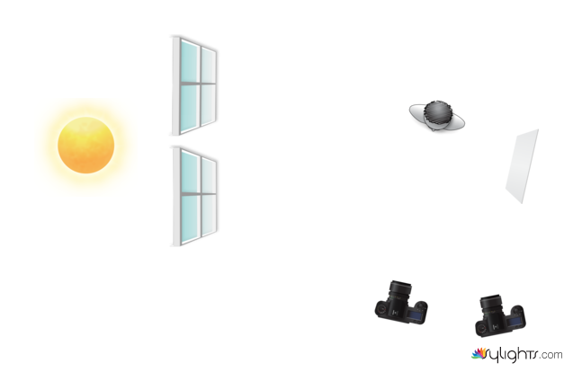 Luz natural, com refletor branco lado escuro da face.