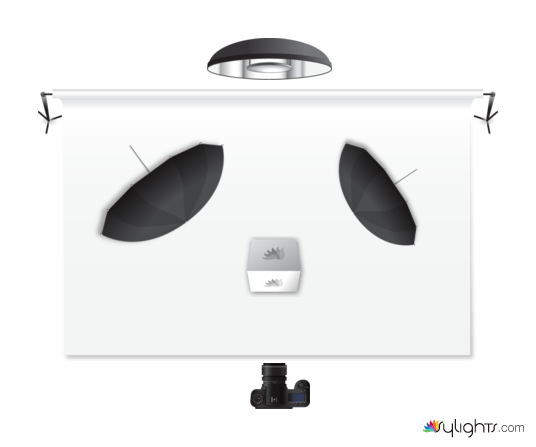 I used a Ring light behind white paper with a white sheet on both side. I used a slight high camera angle for my picture. I used two black objects to help outline the edges (black binder and black poster board). I did this at home.