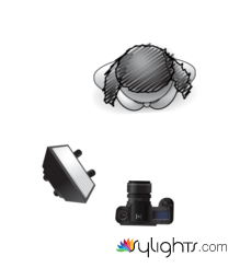 esquema en mariposa, con luz a las 8h y cámara a las 6h en ángulo frontal
