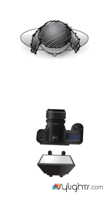 esquema enmariposa, linterna frontal a la modelo,luz sobre la cámara, en posición frontal sin angulo,