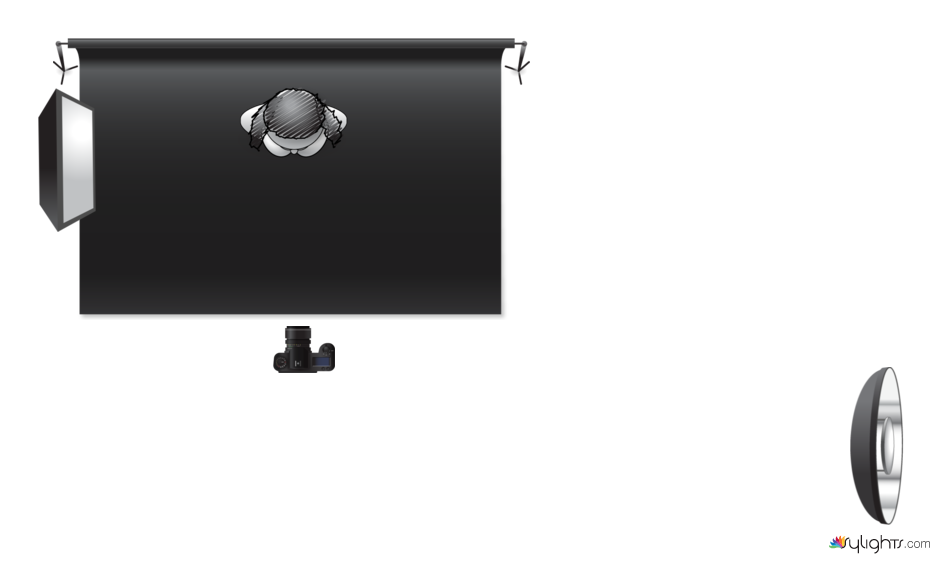 Il set è stato allestito in una stanza con una parete viola scuro, spegnendo tutte le altre fonti di luce.