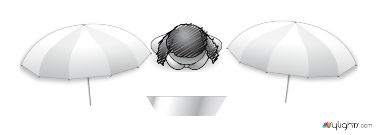 透射傘的高度要超過人物的身高約15cm。用旗板裝銀色反光板。
