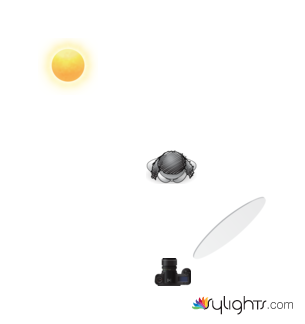 backlit shot using the sun as the key light to separate the subject from background then white circle reflector to fill the shadows