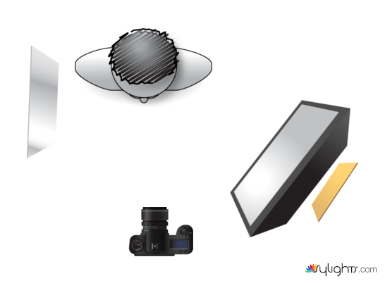 正方型柔光箱搭一塊反光板