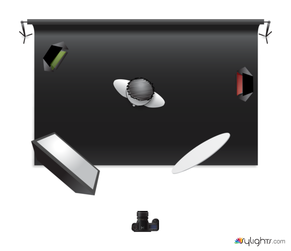 - ca. 1m Abstand, leicht über Kopf, ca. 30° hinter dem Modell