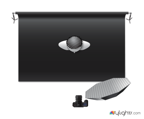 The model stands against a black background, the light placed slightly to the right so half the models face is in the shadow.The Light needs to be a little higher than the model to create the right shadows on the models face.