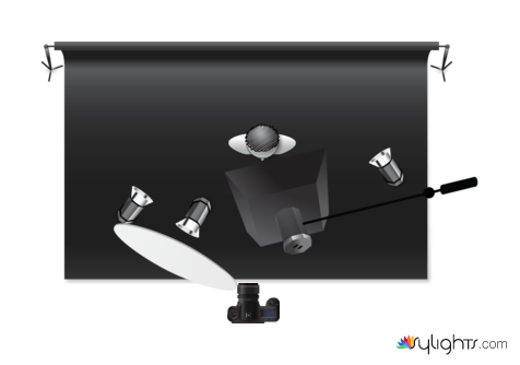 -Two rim lights on either side with silver reflectors and gels if you want them
