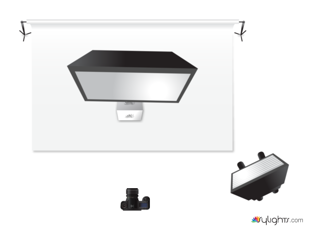 the main softbox/strobe is directly on top of the subject. The second on is a skinny rectangle softbox(I forgot the proper term).