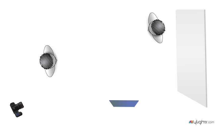 This is the general new lighting scheme. I covered the window of the room. Therefore the light is only artificial. A big LED light covered by a blue filter is pointed in direction of the white ceiling that will be used as a reflector to create an aseptic atmosphere. Against the wall. There is a big mirror. When shooting CU and MS I may use an extra light placed opposite to the camera or on a side to create some shadows.