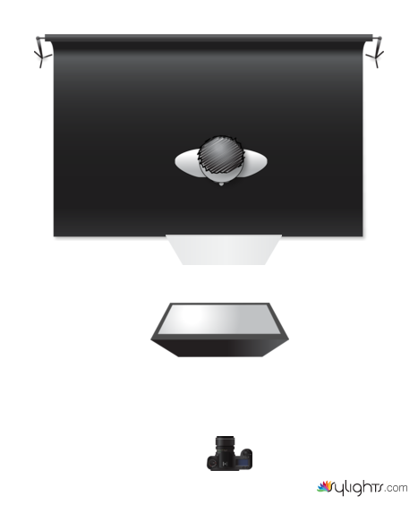 Headshot with one light and one clamshell as fill light under the subject chin to reduce the shadow.