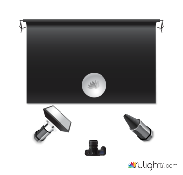 Subject items on Black Velvet Cloth on Stand on Black Backdrop.