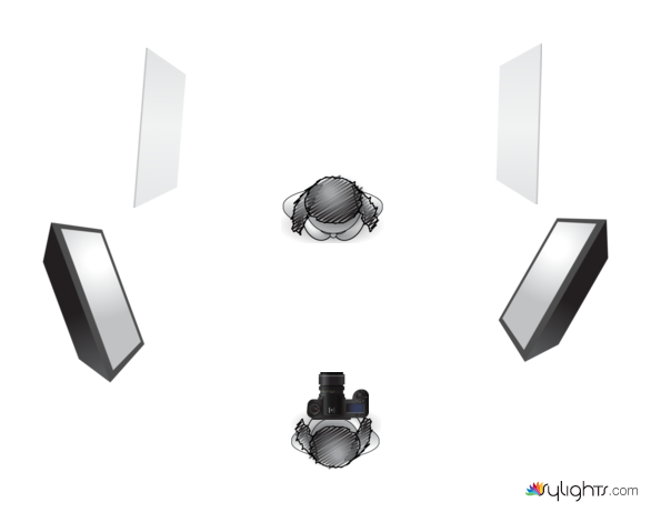 Fashion shoot: 2 softbox, 2 white v-flats