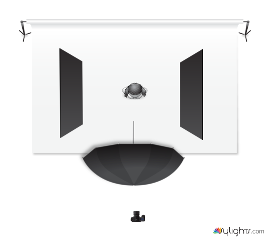 - Umbrella or Octobox shooting up to ceiling and bouncing down onto model