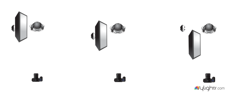 Model is centered in the middle of the box. Bottom edge of SB is aligned with top of model’s head. SB is perpendicular to floor (not angled)