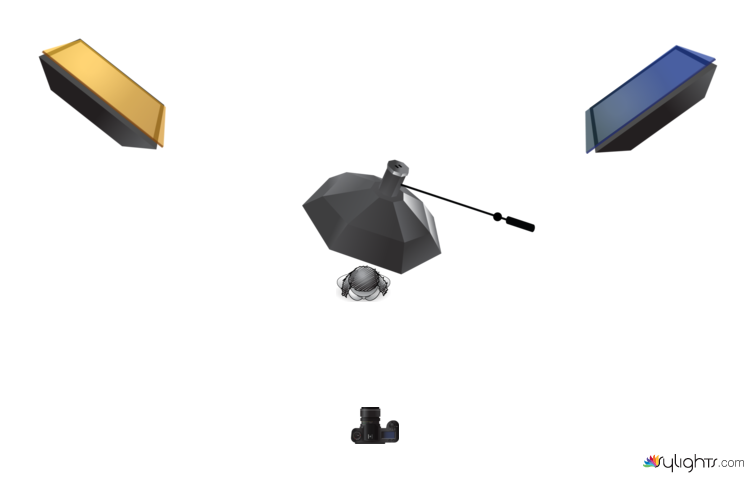 - fondo: 2 softbox 3×4 con gelas