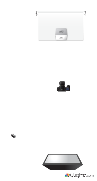 Strobe with reflector and grid is aimed behind the object to eliminate shadows on the background and make the background whiter. Strobe is 1690mm to bottom of strobe bracket.