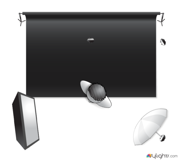 This is a four-light setup using a Canon 60D at f/5.6 with shutter at 1/250th ISO 100. All lights are triggered with the Canon optical E-TTL system. Both the key and the fill are set on E-TTL with a ratio of 6:1 A:B. Key light is a Canon 600EX-RT with an Apollo Soft-Box. Fill light is also a 600 using a shoot-through umbrella. Hair light is a 580EXII set to manual free range at 1/16th power zoomed to 105 to retain a narrow focus. Background light is also a 580 set on manual free range at 1/2 power through a grid with a honl Hollywood filter.