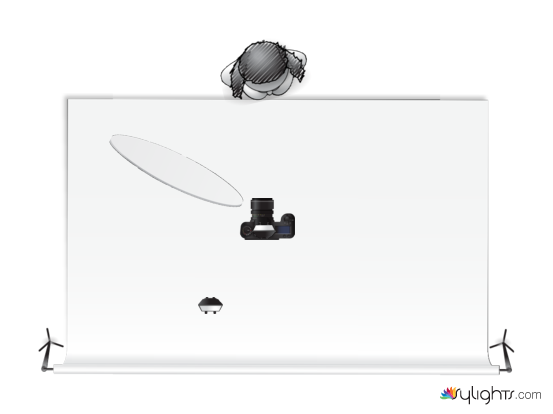 Using a single strobe to bounce off a white background with a diffuser in front of the subject to add soft light