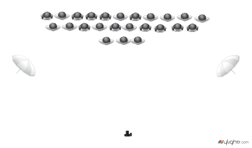 Diagram for lighting 125 member band standing on bleachers.