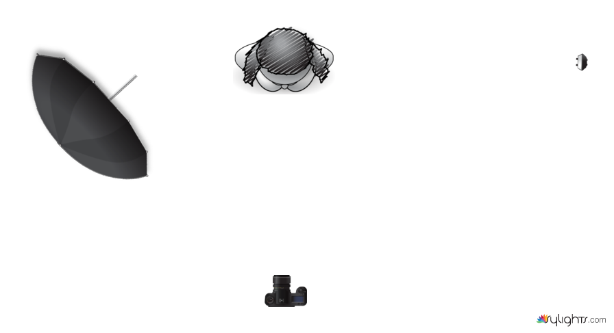 Speedlight Nr 1: in reflected umbrella to the left
