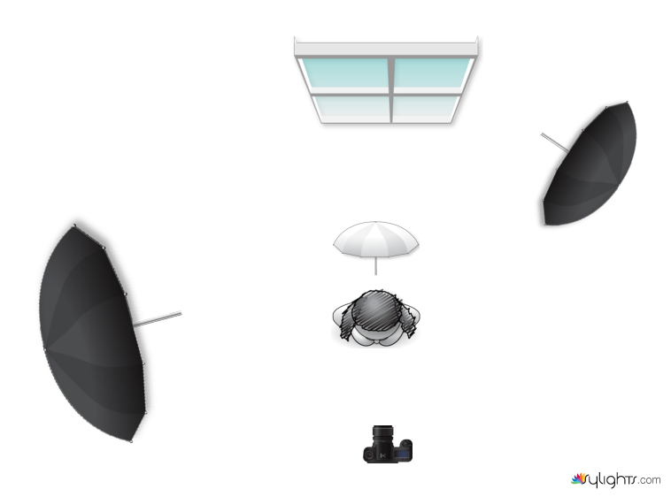 Speedlight Nr 1: in reflected umbrella to the left