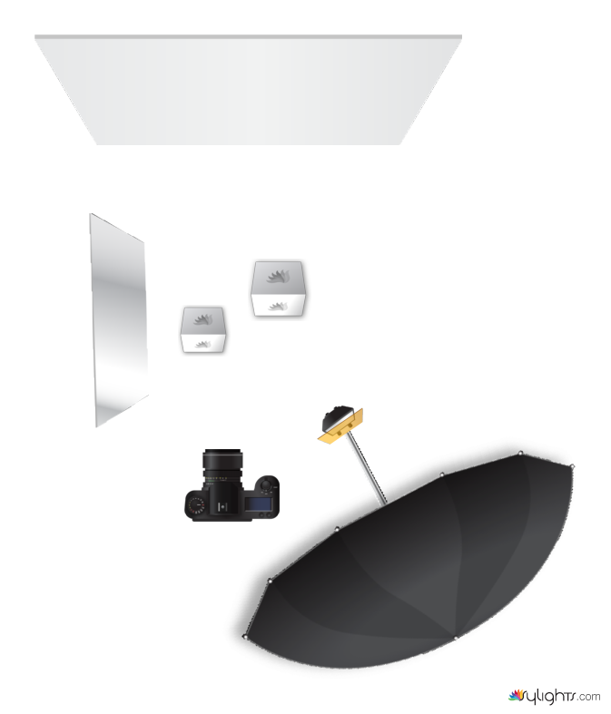 I put both of them on an old trunk in front of a white wall, and used the silver side of a survival blanket as a reflector on the left.