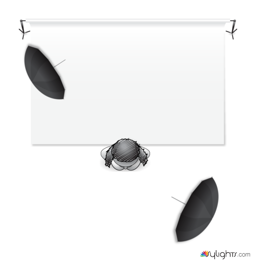 מטרייה לקיר- למדוד בערך ל5.6 לאור ראשי – למדוד ל9 חשוב שהמודלית היה רחוקה מהרקע. ניתן להוסיף עוד מטרייה לצד השני לאזן ללבן לגמרי