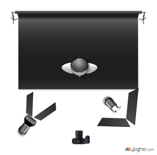 Intended to give a slice of light right in the middle of the subject’s face, letting everything else fade to nearly black. V-flat on Camera Left is there to provide a gobo effect; the light is firing through a narrow slit. On the right, the black is just there for tiny amounts of fill.