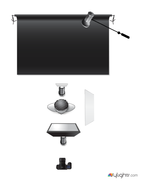 Hair light behind and above subject approx 6 ft