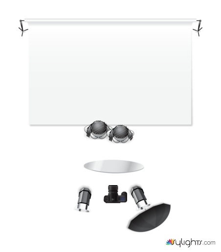 silver umbrella as main light. one light bounce against wall behind as fill. reflector below.